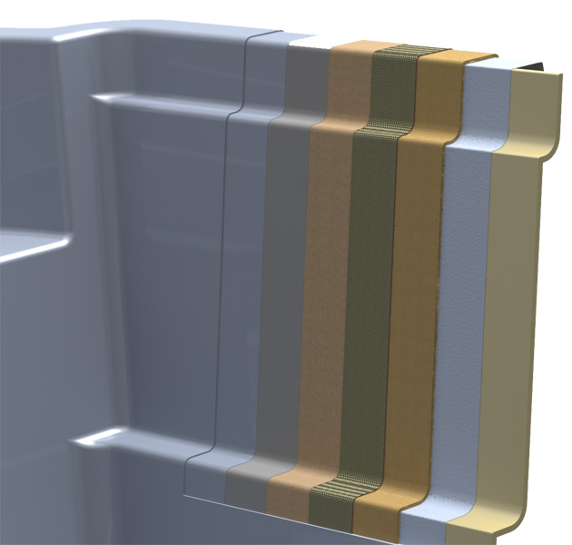 Wir veredeln für Sie die traditionellen Poolschichten (Laminat) mit verstärkenden Komponenten. So bleibt Ihr neuer Traumpool auch in Zukunft besonders formstabil und makellos dicht.