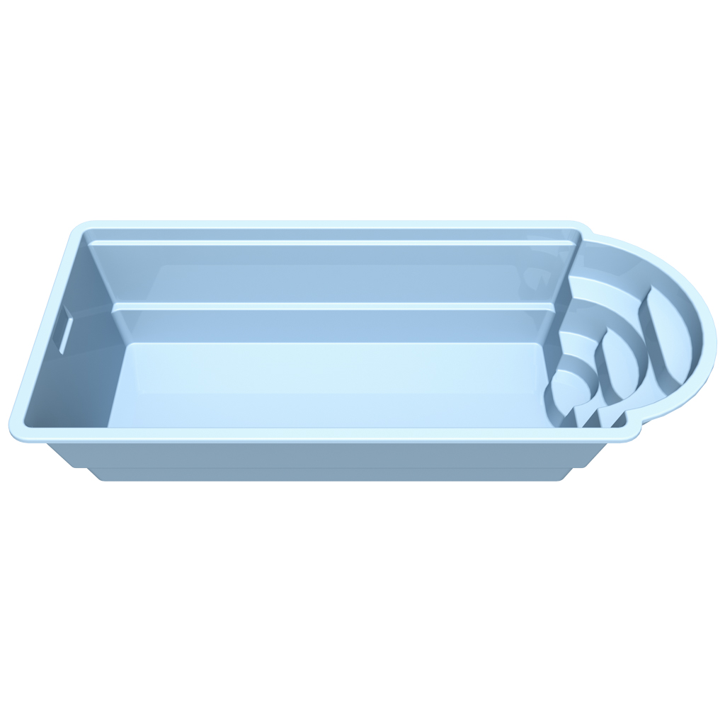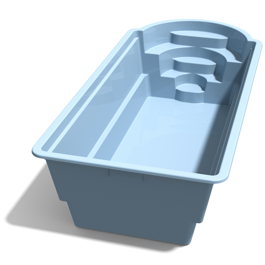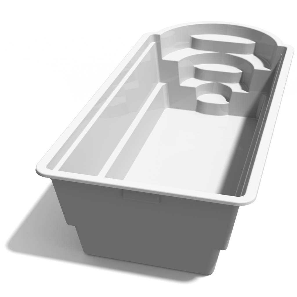 Dabei stellen die attraktive rechteckige Form und die elegante römische Einbautreppe die wichtigsten Unterscheidungsmerkmale dieses Modells dar. Gerne gewählt als Familienpool, in dem Jung und Alt gemeinsam Spaß haben.